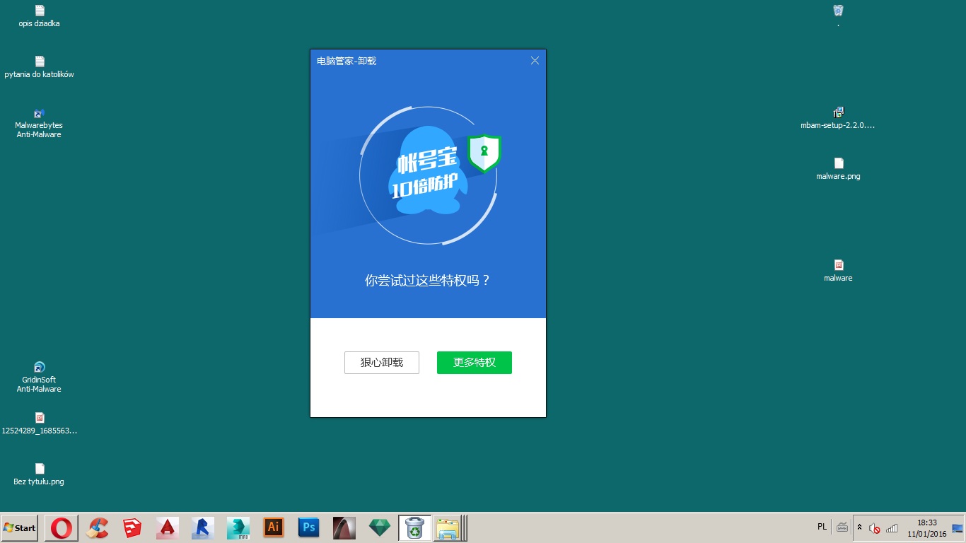 Mam następujący problem. Niedawno przy ściąganiu oprogramowania zainstalowało mi się dużo złośliwych programów. Udało mi się usunąć chyba wszystkie oprócz jednego, który uruchamia się po każdym uruchomieniu komputera i wyświetla się w postaci podanego w załączniku okna. Napisy są chyba po chińsku.
