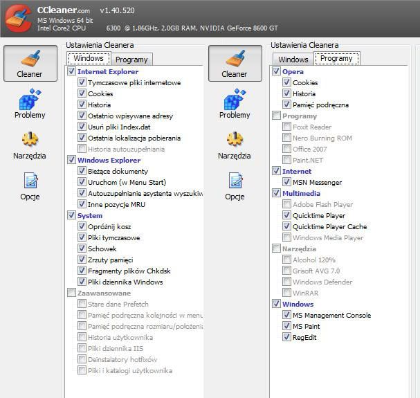 Co do CCleaner to raczej bez obaw możesz wszystko zaznaczyć.